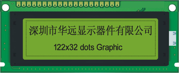 1) Display format: 122x32 dots COB 18pins 2) Display mode: STN, Positive, Y/G 3) PCB size: 98x50x13.5mm 4) VA size: 76x26mm